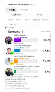 - Leandro Santoro ganó las comunas 3,4,5,8,9, y 15, es decir, la zona sur y comunas de clase media-media y baja. En otras de clase media, como la 10 o la 7 la victoria de LLA fue por muy poca diferencia. Se observa una clara diferenciación social en los resultados: el gobierno perdió en los barrios de clases populares y en los de clase media menos próspera.